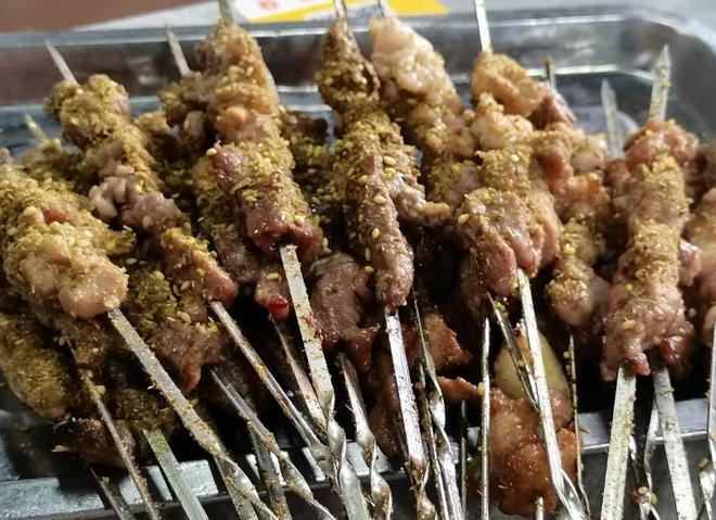 李教授还点了20串羊肉串,虽然肉不是很多,但是价格便宜,一串才2块,而且羊肉特别新鲜,都是当天屠宰的羊肉,饭店提前还用洋葱鸡蛋腌制入味,烧烤后滋滋冒油,一口羊肉一口白酒,那叫一个香,好吃至极。