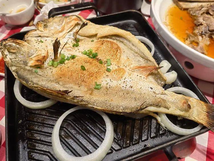 不过添加这些添加剂也是能理解的,这些添加剂大多是保水剂,就是想保持海鲈鱼的水分,这样解冻后吃起来味道就会更好。而且西贝制作这条烤鱼非常简单,解冻之后刷上酱料送到烤箱烤制。烤熟之后底下垫上点洋葱就可以出餐了。可以说哪怕你没有任何的厨师经验,你会用烤箱就可以制作这条烤鱼。